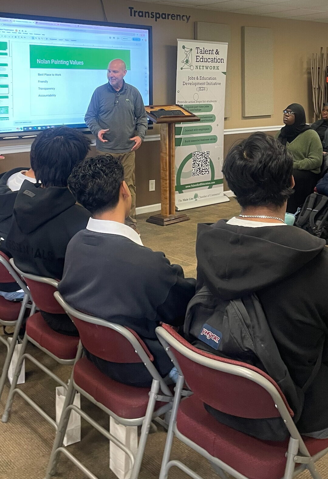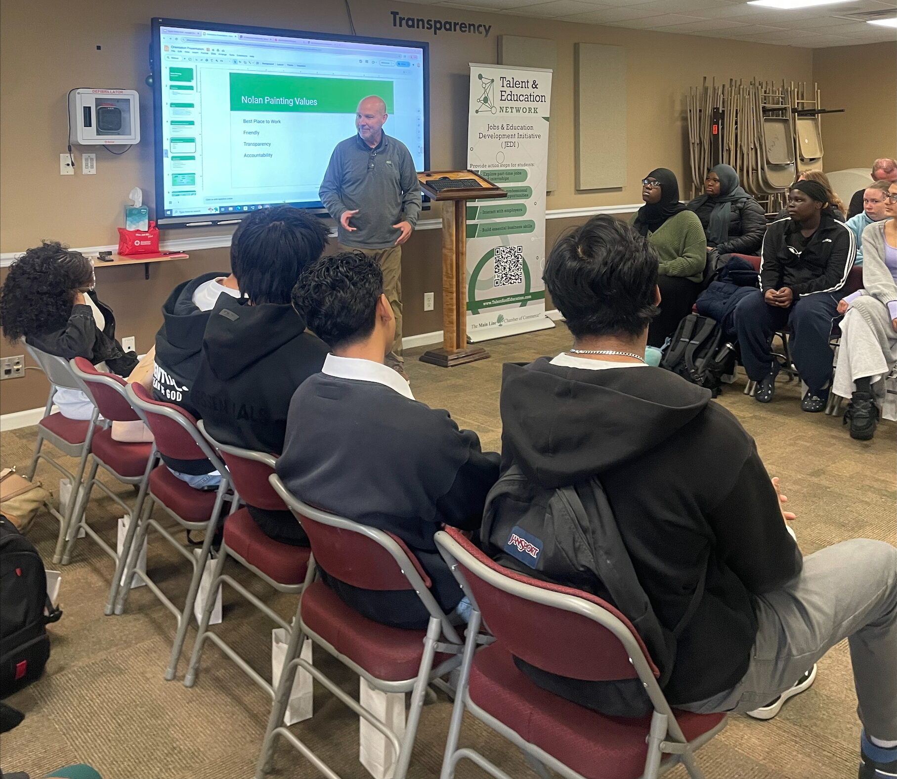 TEN’s mission is to inspire future careers and provide pathways to economic mobility for college students and high school students. Five Opportunity Knocks sessions are held throughout the year for college students, and 25 interactions through the Jobs and Experience Development Initiative (JEDI) are held for high school sudents throughout the academic year.
